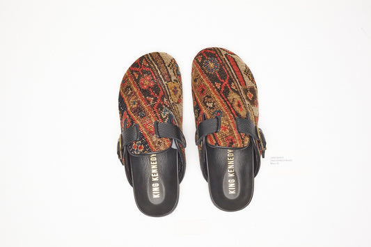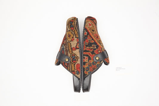 Embracing the Japanese concept ‘Mottainai‘ meaning 'waste nothing' we take carpets from the late 1800’s and early 1900’s that are beyond repair to create our one-of-a-kind Mules. Each pair is unique and is carefully crafted in Los Angeles, CA