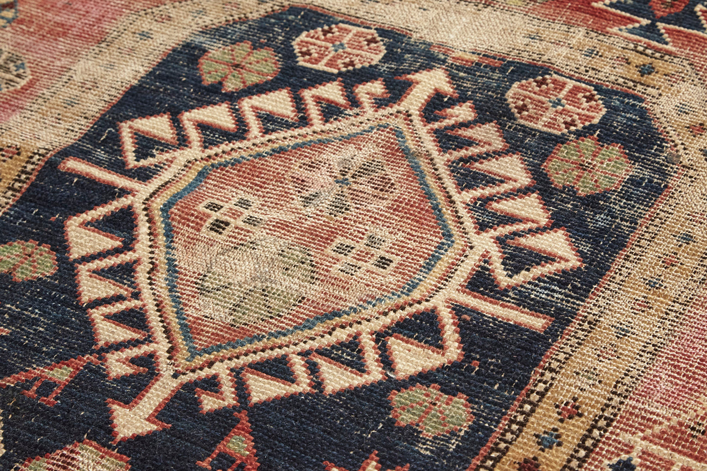 All rugs in our collection are hand woven pieces of folk art. Pieces are chosen by our curator for their specific wear and patina. Please read descriptions carefully.