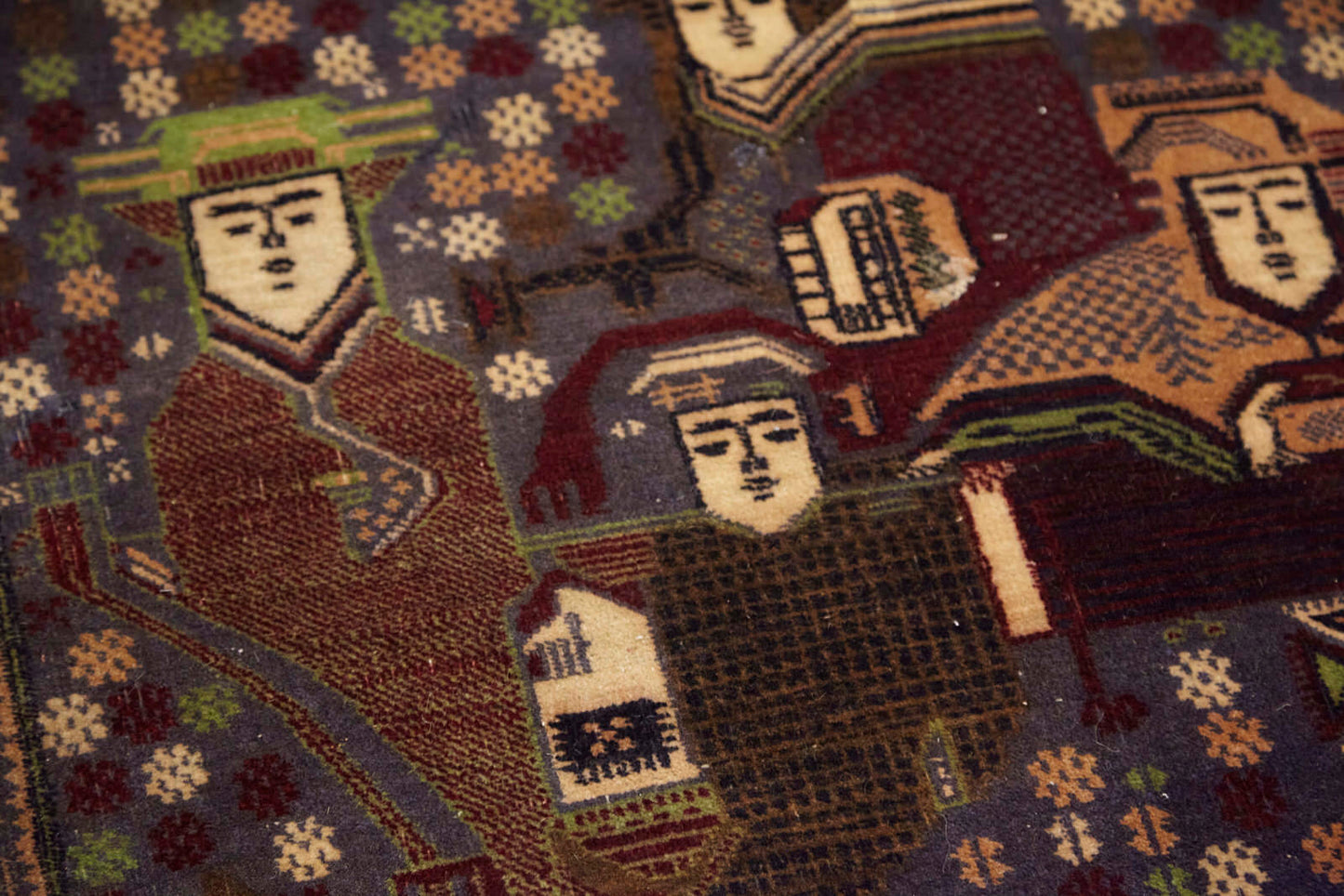 * All rugs in our collection are hand woven pieces of folk art. Pieces are chosen by our curator for their specific wear and patina. Please read descriptions carefully.