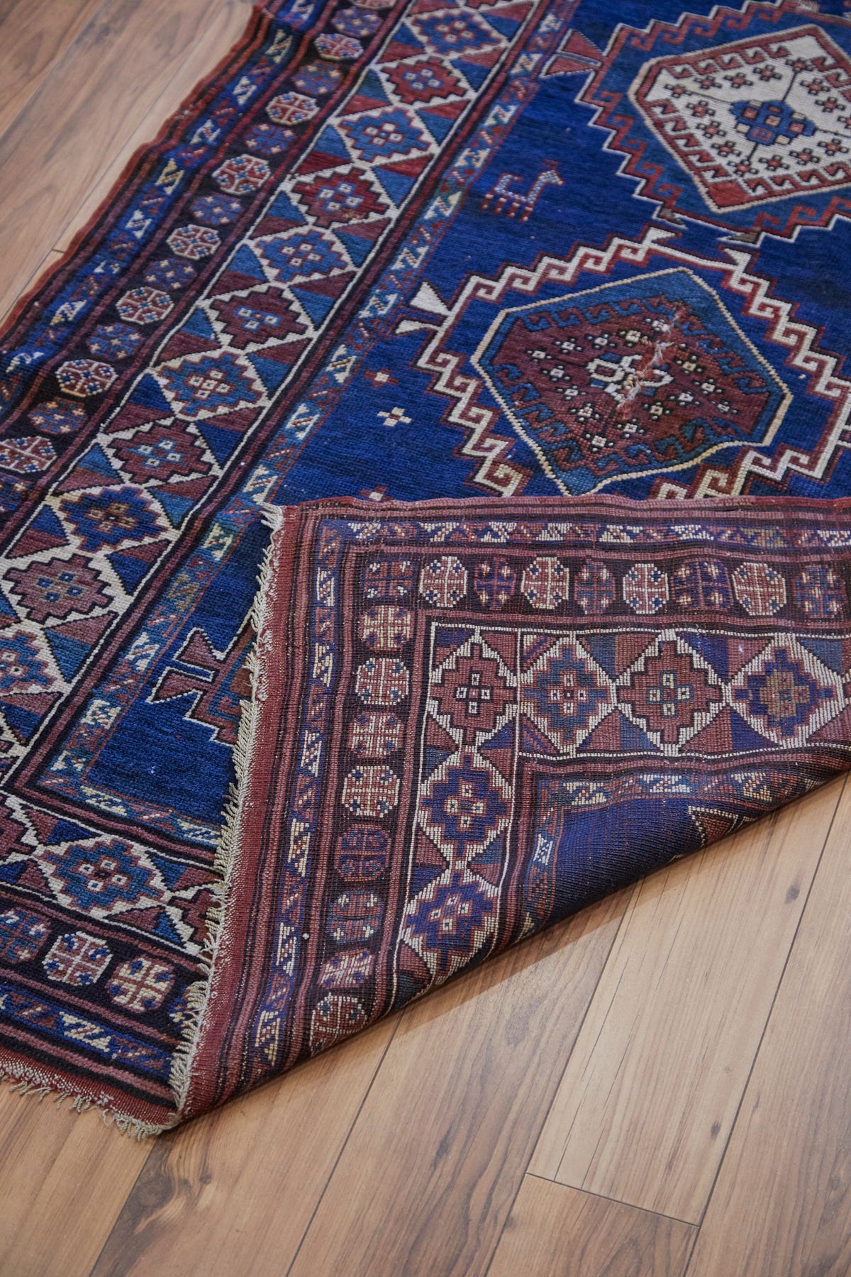 All rugs in our collection are hand woven pieces of folk art. Pieces are chosen by our curator for their specific wear and patina. Please read descriptions carefully.
