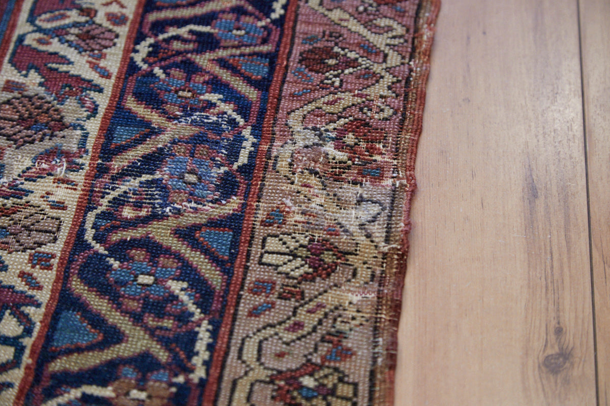 - All rugs in our collection are hand woven pieces of folk art. Pieces are chosen by our curator for their specific wear and patina. Please read descriptions carefully.