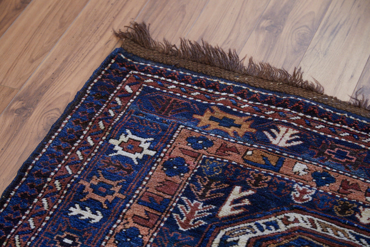 * All rugs in our collection are hand woven pieces of folk art. Pieces are chosen by our curator for their specific wear and patina. Please read descriptions carefully.